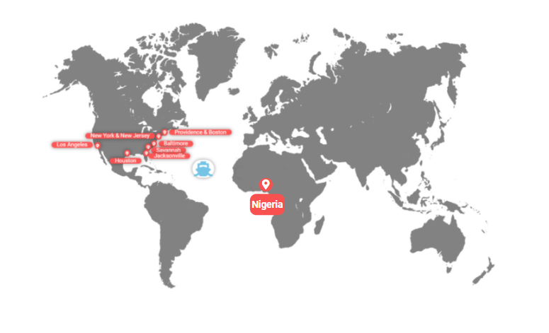 Ship a car to Nigeria from the major ports in the United States: Port of Boston, Port of New York, Port Of New Jersey, Port Of Norfolk, Port Of Baltimore, Port Of Charleston, Port Of Savannah, Port Of Brunswick, Port Of Jacksonville, Port Of Miami, Port Of Houston, Port Of Galveston, Port Of Freeport Texas, Port Hueneme California, Port of Long Beach California, and Port of Tacoma, USA. Port of Halifax, Canada